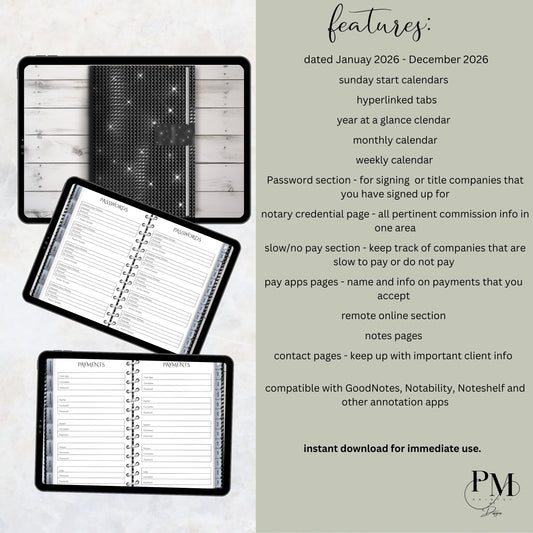 2026 Notary Digital Planner | Digital Planners for Signing Agents/Notary | Notary Planner with Hyperlinks | Best Digital Planner for Notaries 2026