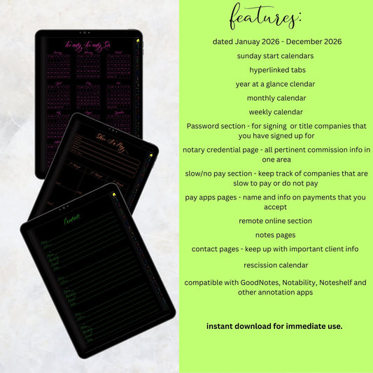 Notary Digital Planner | Digital Planners for Notary/Signing Agent 2026 | Notary Digital Planner | Notary Planner with Hyperlinks | Best Digital Planner for Notaries 2026 | Business Digital Planner