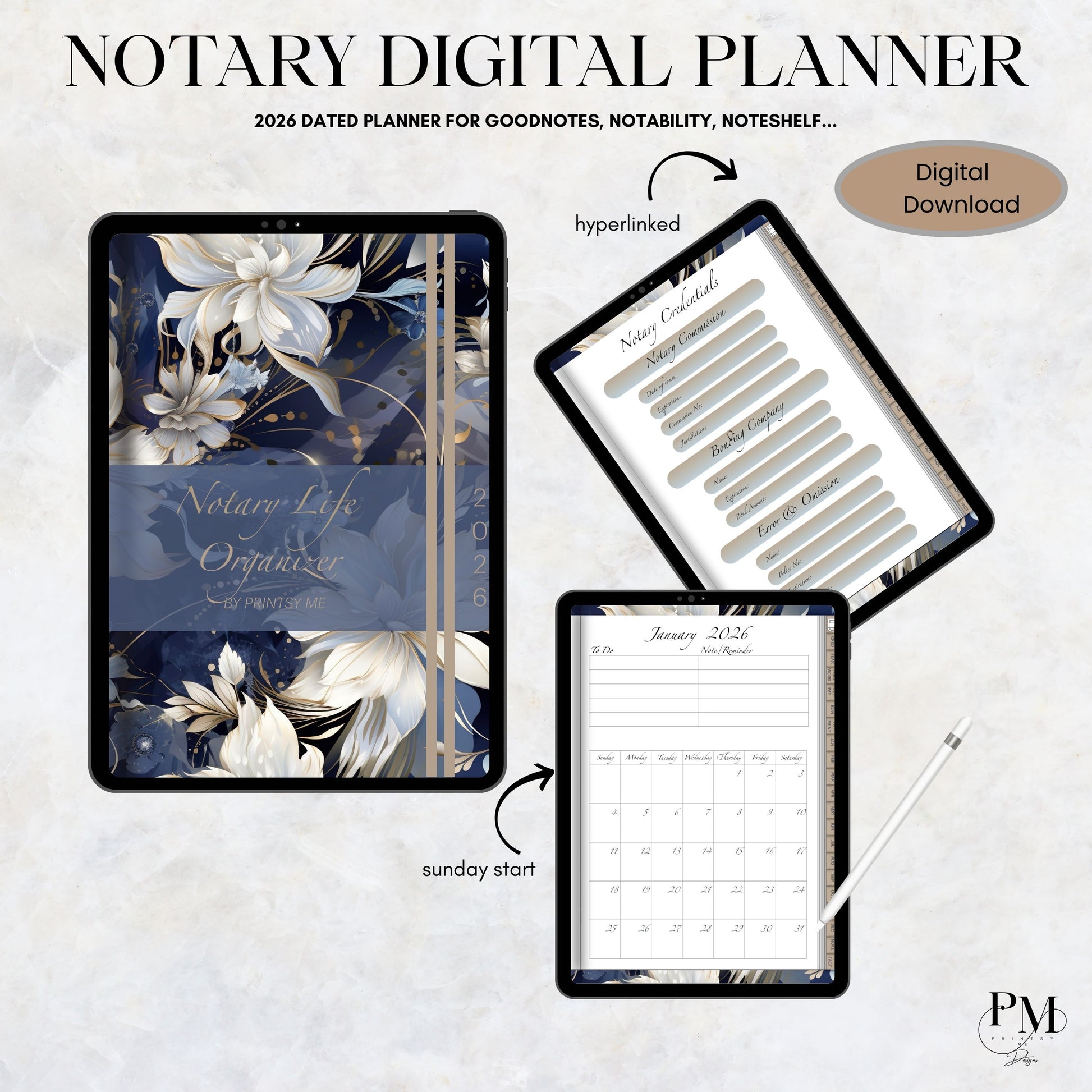 Notary Life Organizer 2026 | Notary Digital Planner | Digital Planners for Signing Agents/Notary